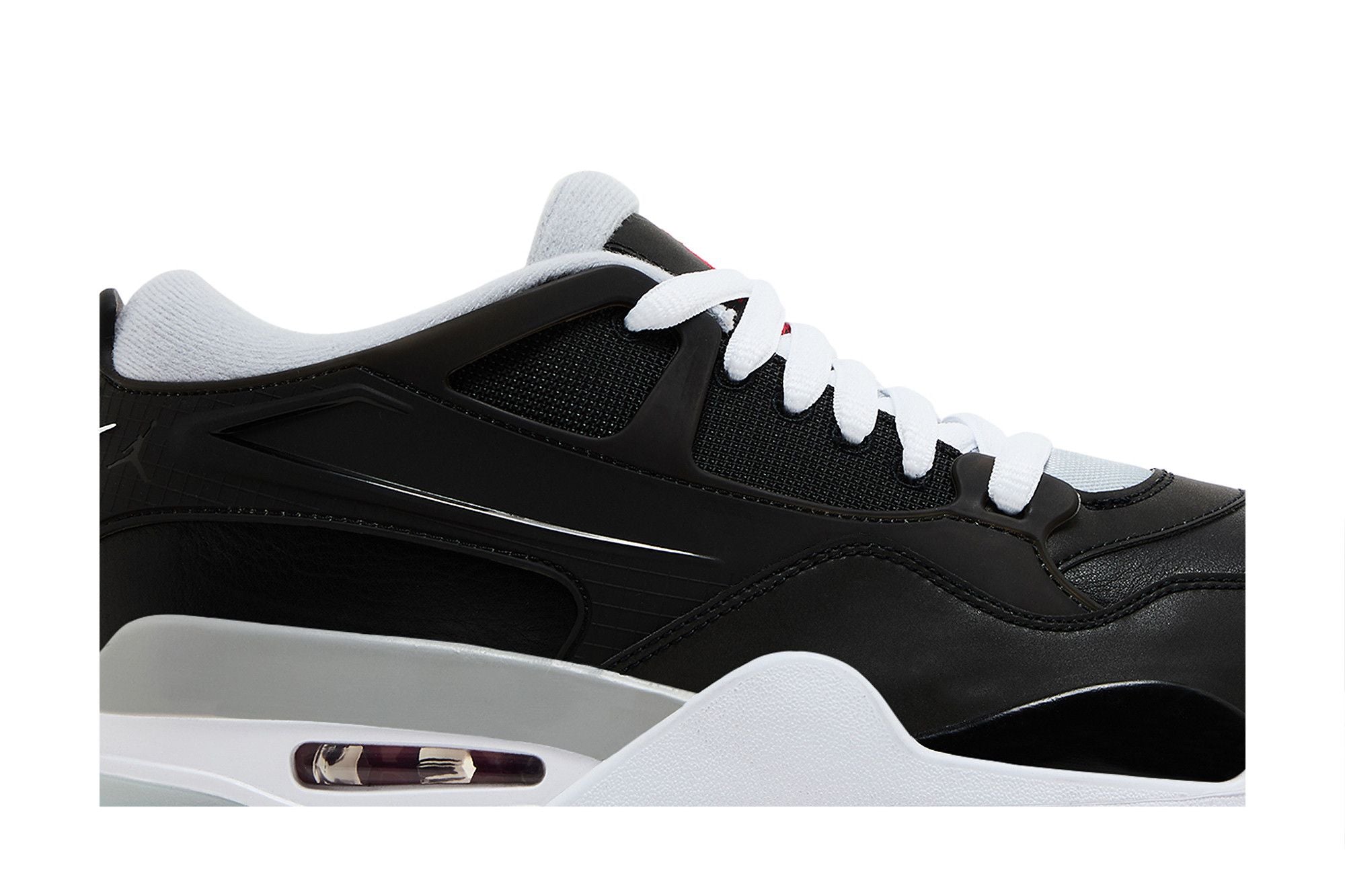 La Jordan 4 RM Black Metallic est une sneaker à l'esthétique moderne et accrocheuse. Elle est principalement noire, avec une matière synthétique et des empiècements gris et blancs. La semelle extérieure est blanche avec un détail gris et un empiècement rouge. Les lacets sont également blancs. Son design présente des lignes épurées et minimalistes, avec une touche métallique pour une touche d'élégance. La couleur principale est le noir, avec des nuances de gris et de blanc apportant profondeur et contraste.