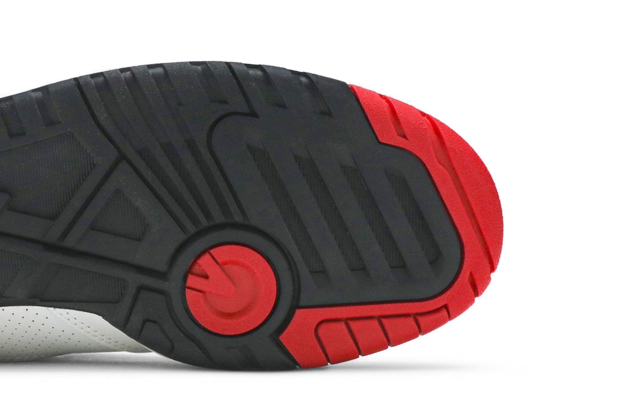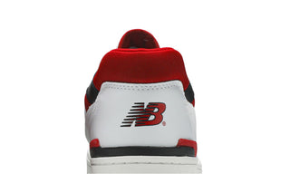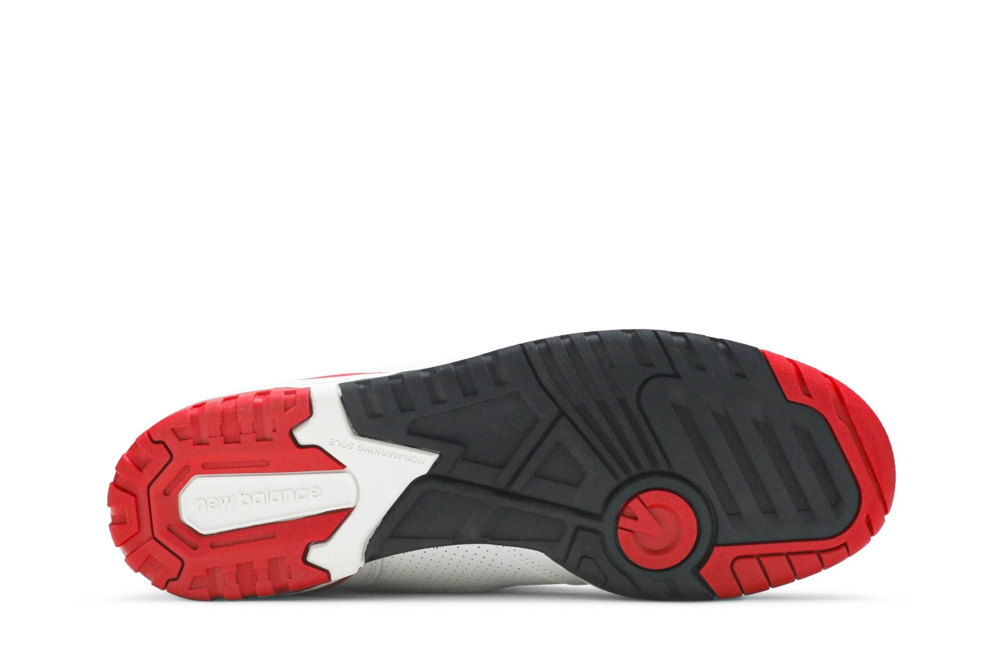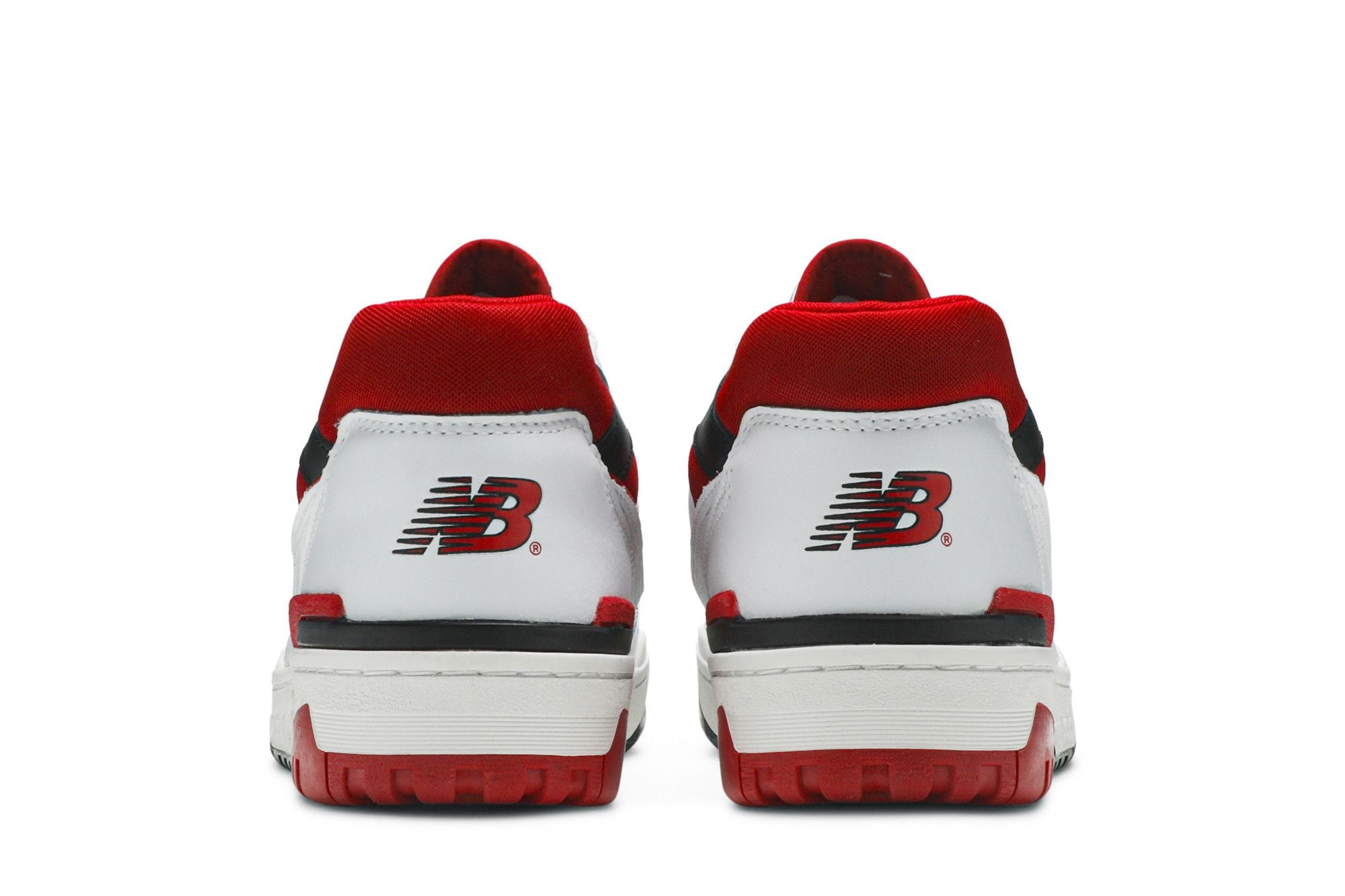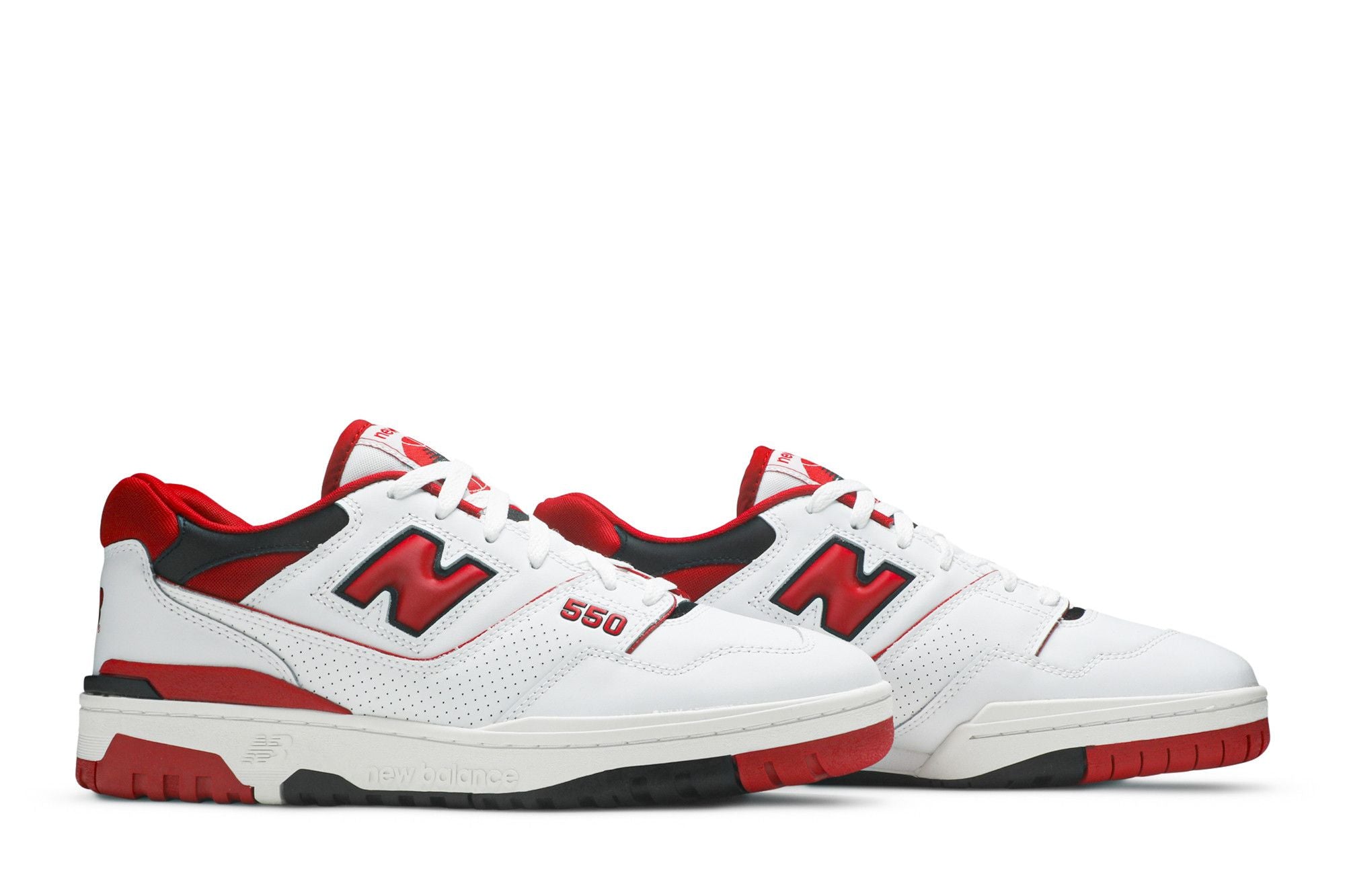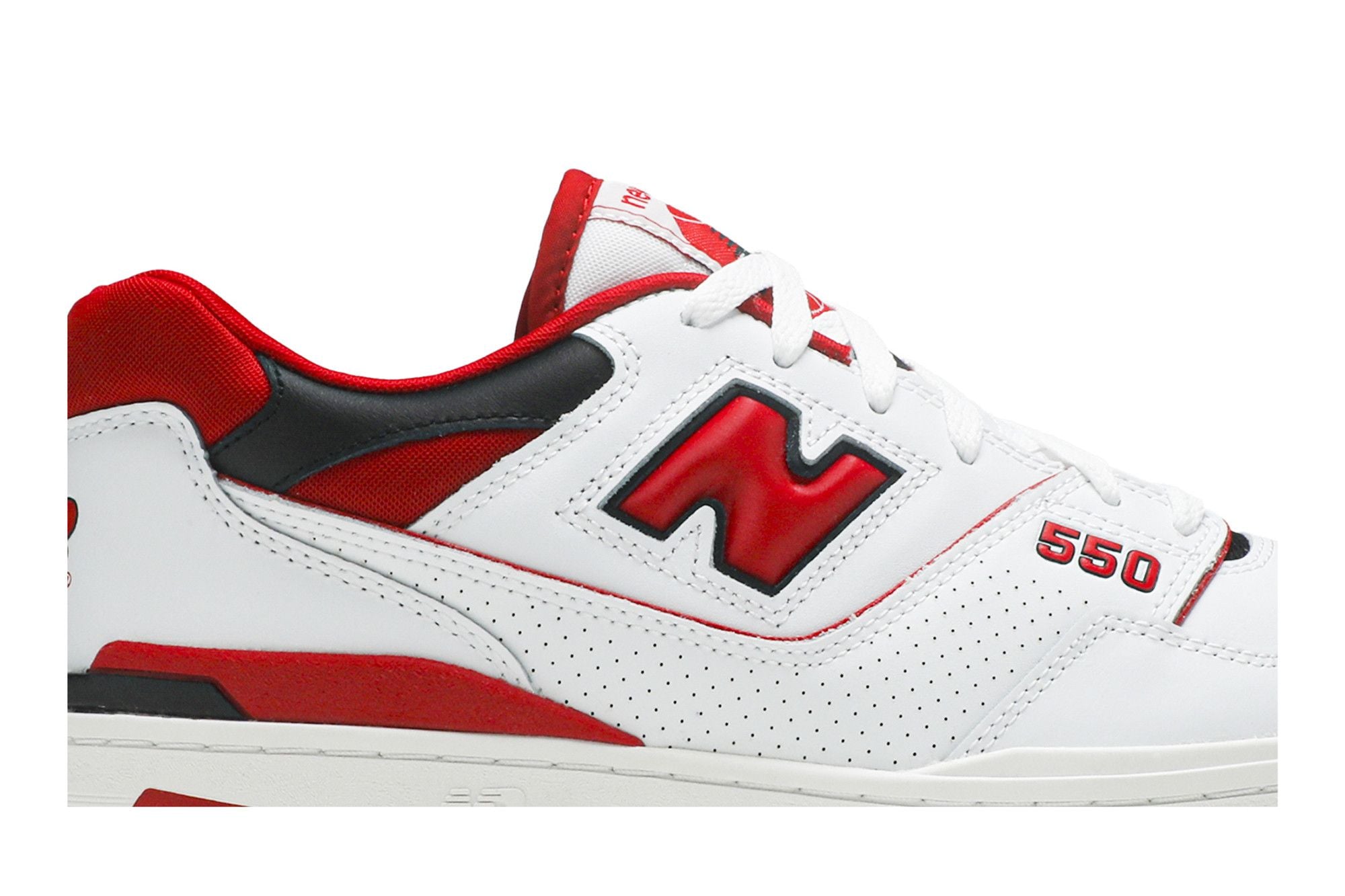 La New Balance 550 White Red possède une base qui associe cuir perforé et lisse. Les couleurs sont majoritairement blanches, avec du rouge sur le col et du noir sur la semelle extérieure et le quartier. Il y a la marque New Balance habituelle et une étiquette 550 près des lacets de la silhouette. Voir toutes les specs sur New Balance .