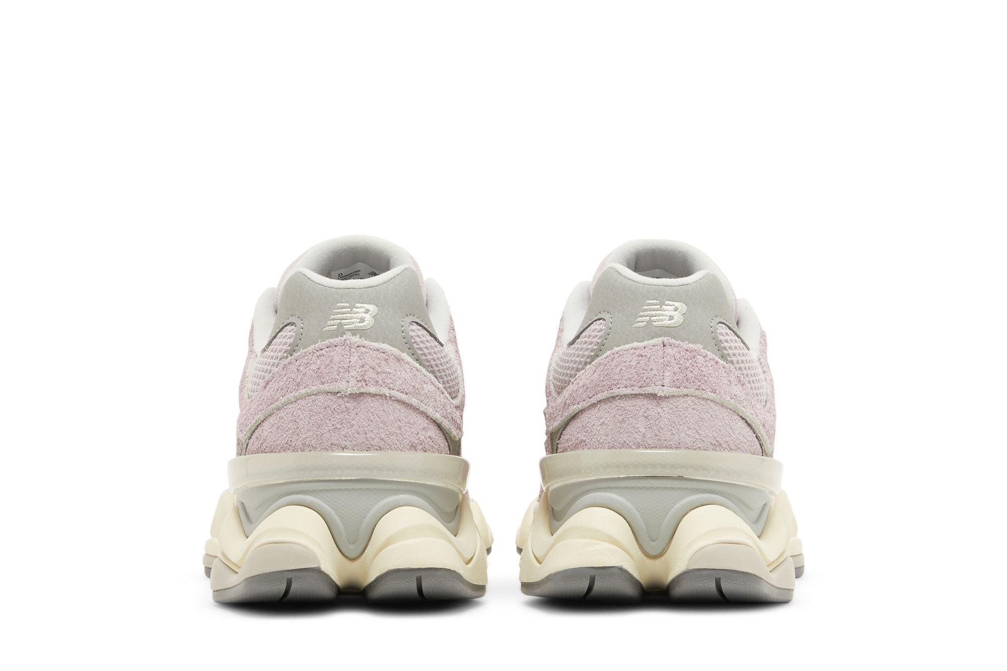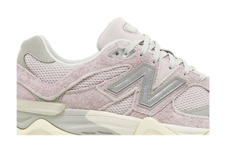 La New Balance 9060 December Sky dévoile une base en mesh rose pâle, accompagnée de superpositions en daim et cuir gris ton sur ton comme le « N » sur le côté. La semelle dominante est de couleur blanc cassé. Voir toutes les specs sur New Balance .