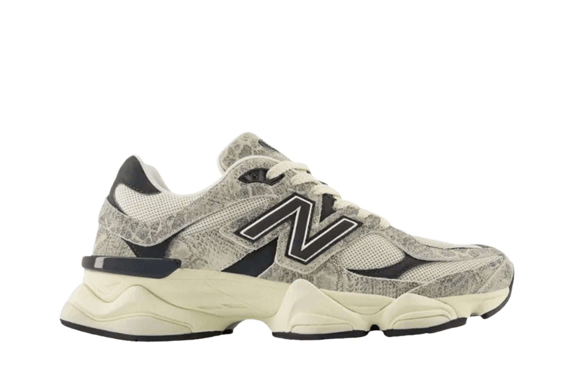 La New Balance 574 est une sneaker au design accrocheur et au style moderne. Sa tige est confectionnée dans une matière grise à motif peau de serpent. Les empiècements en mesh assurent une respirabilité optimale, tandis que la languette intérieure assure un confort optimal. La semelle ivoire est robuste et présente une base large pour une meilleure stabilité. Le logo « N » noir est positionné sur le côté de la chaussure. La New Balance 574 arbore une palette de couleurs gris, noir et ivoire.