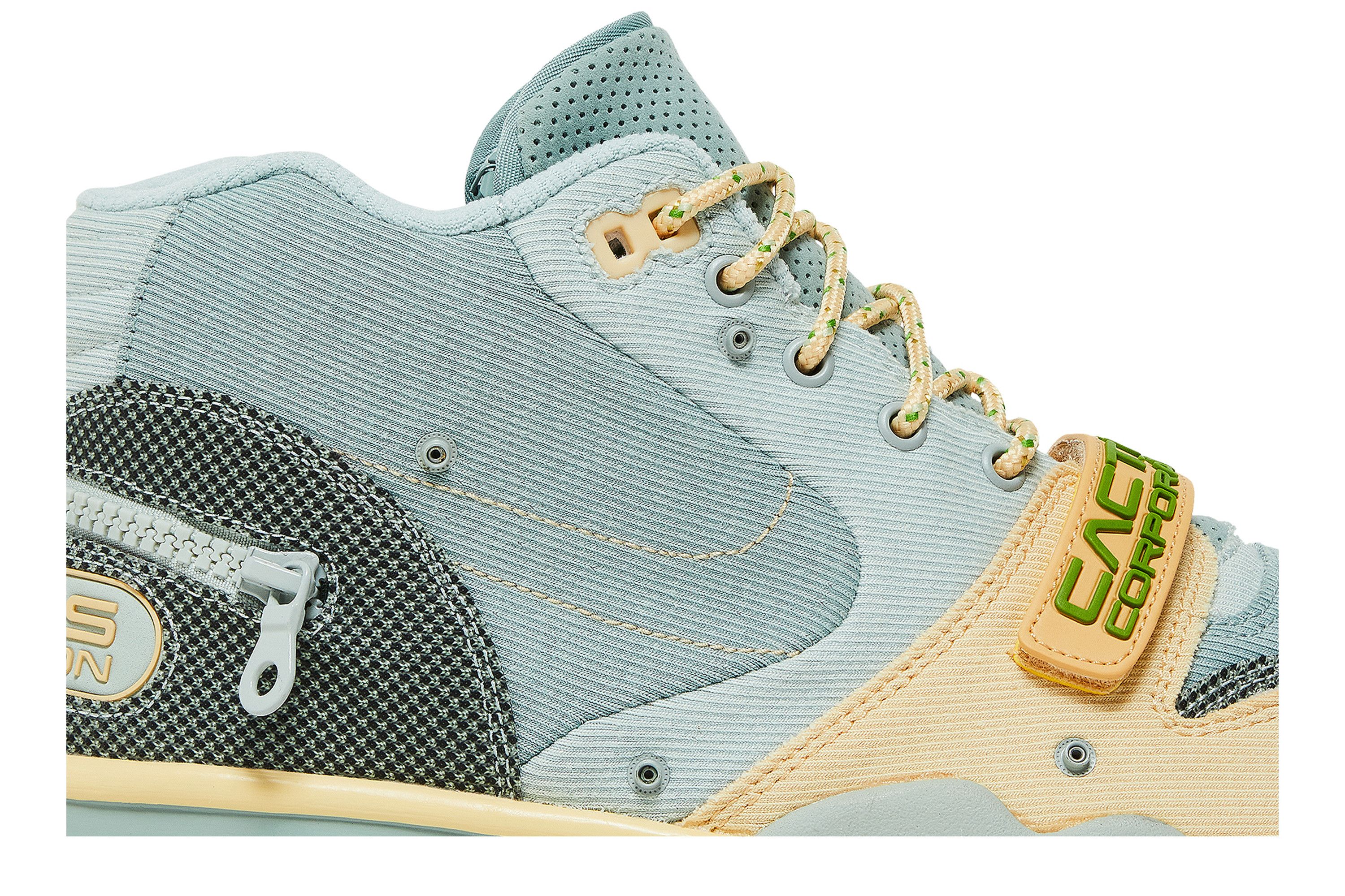 Inspirée des équipements de randonnée, la Nike Air Trainer 1 SP Travis Scott Grey Haze présente une tige en toile gris clair avec des superpositions en mesh gris foncé et un Swoosh à point unique. Les superpositions en toile sur la tige offrent de multiples options de style, tandis que les poches zippées cachées sur le talon et à l'intérieur de la languette ajoutent commodité et fonctionnalité. Le design est complété par les détails « Cactus Corporation » sur le talon et la sangle velcro de l'avant-pied, qui ajoutent une touche exclusive et distinctive.