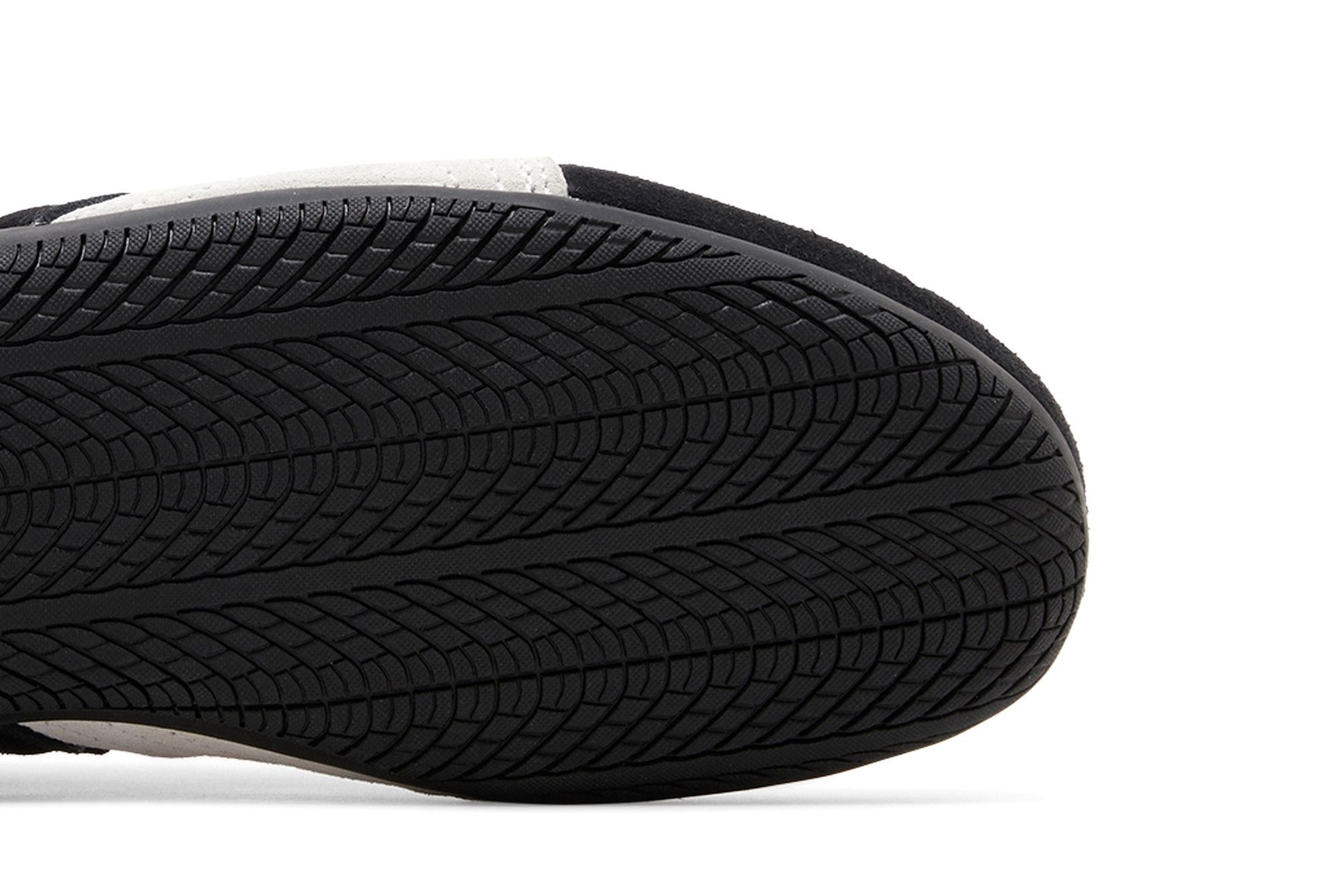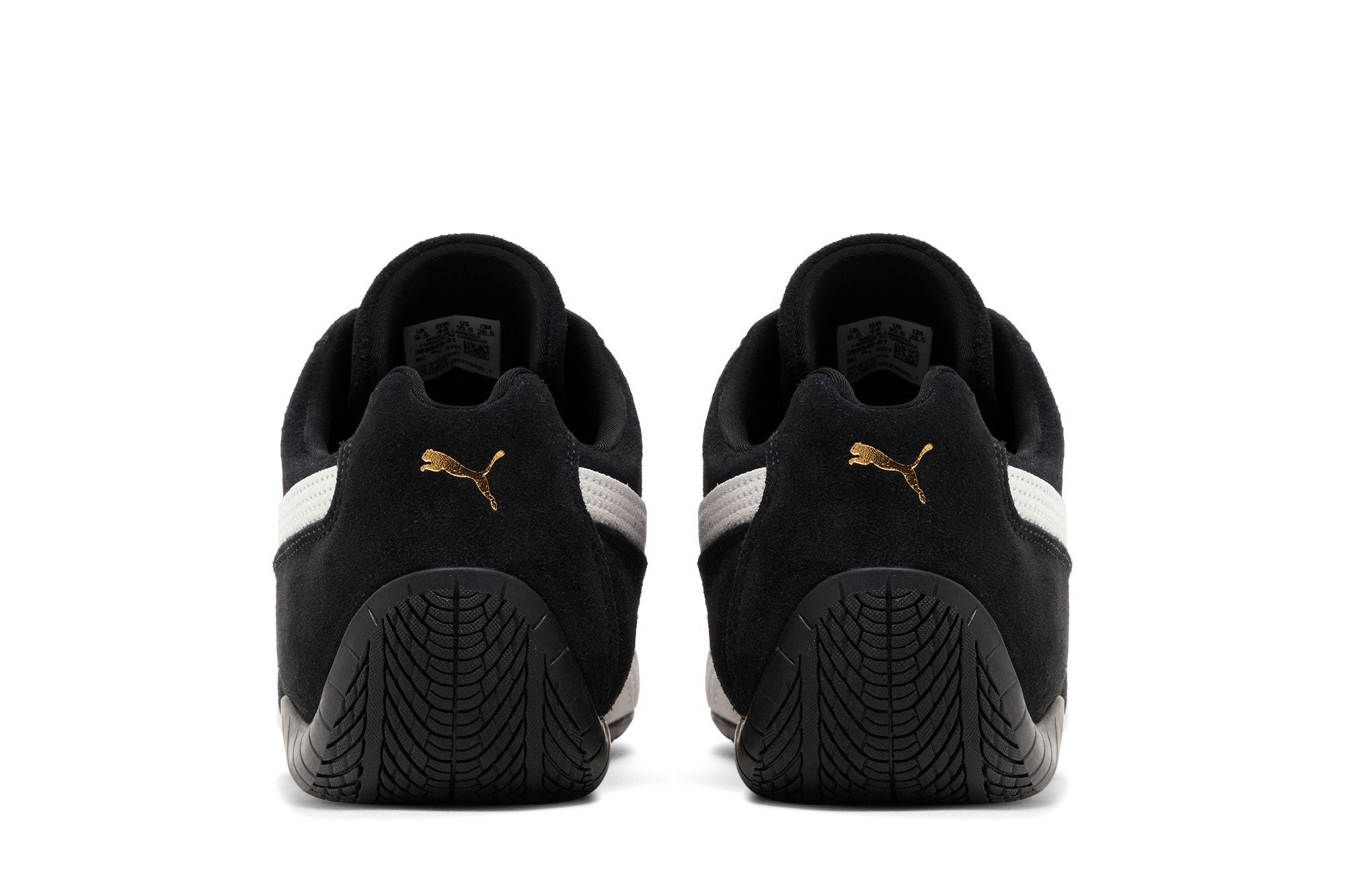 Cette sPuma Speedcat OG Black White présente une silhouette élégante et ajustée. La tige est fabriquée en daim de qualité supérieure en noir avec la bande blanche emblématique s'étendant sur les panneaux latéraux. De plus, la Puma Speedcat OG Black White présente une marque Puma subtile, notamment « PUMA » en lettres dorées métalliques sur le panneau latéral et la languette, et un logo Jumping Cat blanc sur la zone des orteils. La semelle fine en caoutchouc est noire et offre une traction sous le pied, tandis que les lacets noirs assurent un ajustement sûr.