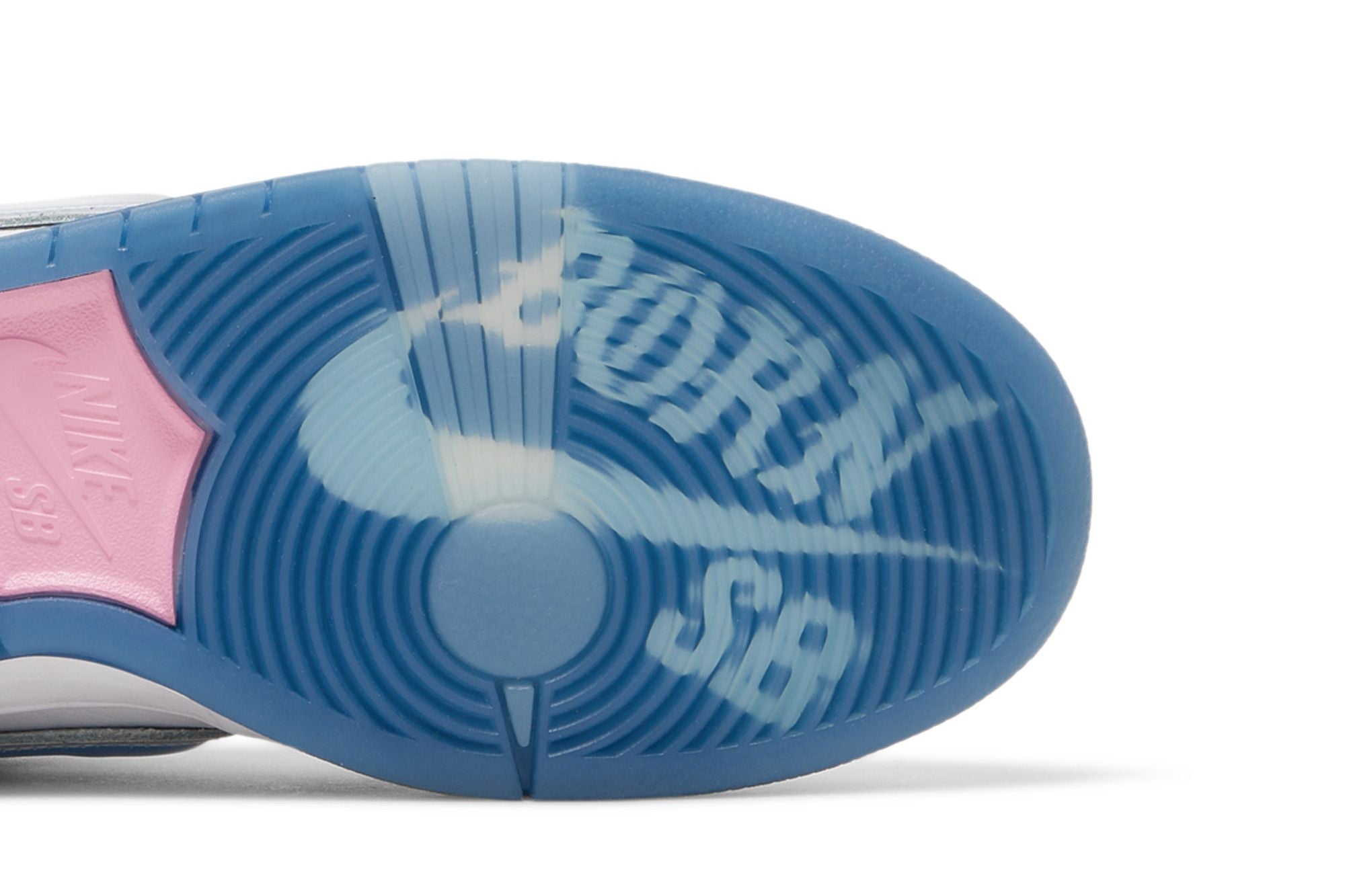 Cette Nike SB Dunk Low Born x Raised One Block At A Time dévoile une base en cuir Blanc, accompagnée de superpositions de nubuck Bleu Royal. Elle se démarque grâce aux nombreux détails présents tout autour de la paire. Des perforations en forme de croix remplacent les œillets supérieurs et correspondent aux aérations des orteils tandis que le Swoosh présente une finition holographique assortie à la languette du talon. Mais ce n'est pas tout. La devise de la marque californienne « One Block At A Time » est brodée sur l'avant-pied tandis que l'inscription « On the Turf » est placée sur le talon. Il y a aussi une crête rose pâle sur le talon.
