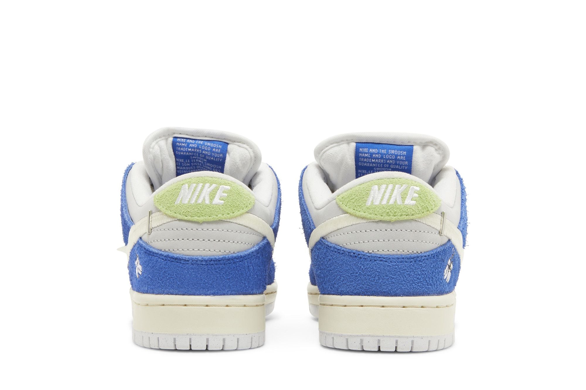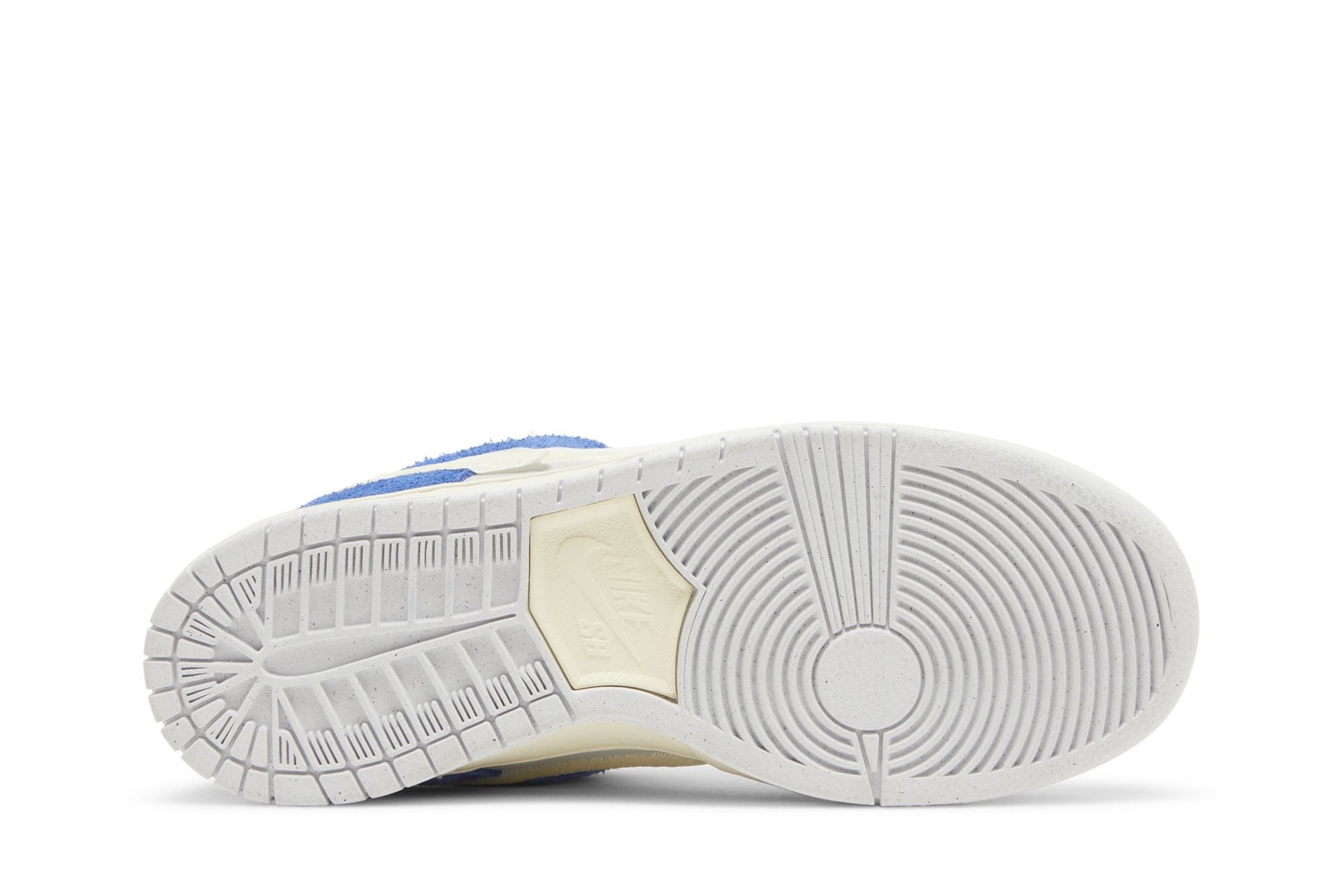 Fly Streetwear a utilisé des matériaux haut de gamme lors de sa première collaboration avec la SB Dunk Low Pro Fly Streetwear Gardenia, avec un long daim bleu assorti à la tige en cuir blanc. Nike a utilisé une semelle intercalaire crème et un logo Swoosh brodé qui s'inspire de la fleur Gardenia. Les baskets mettent en valeur la marque Fly Streetwear Skate Shop sur la languette et la semelle intérieure.