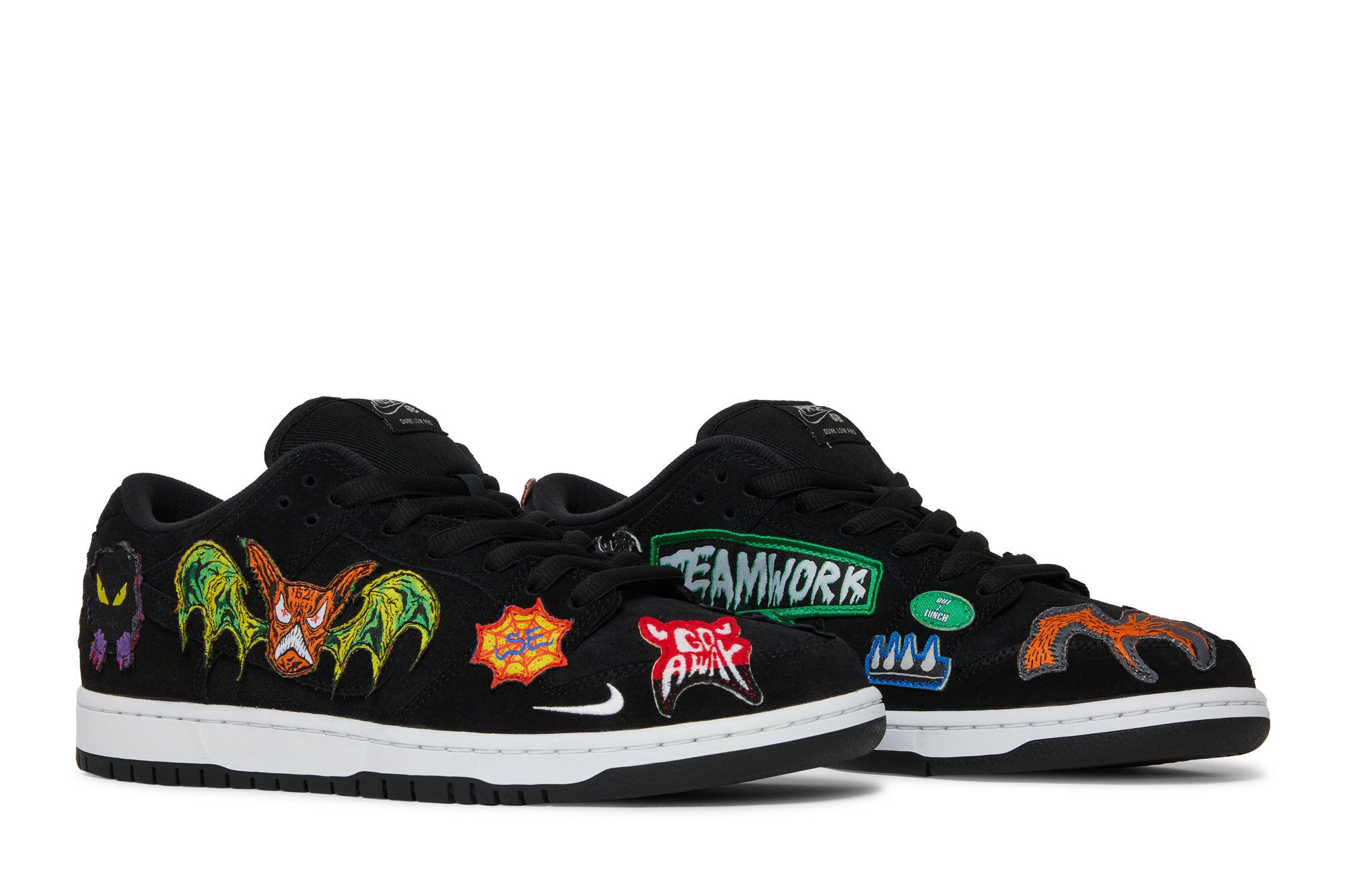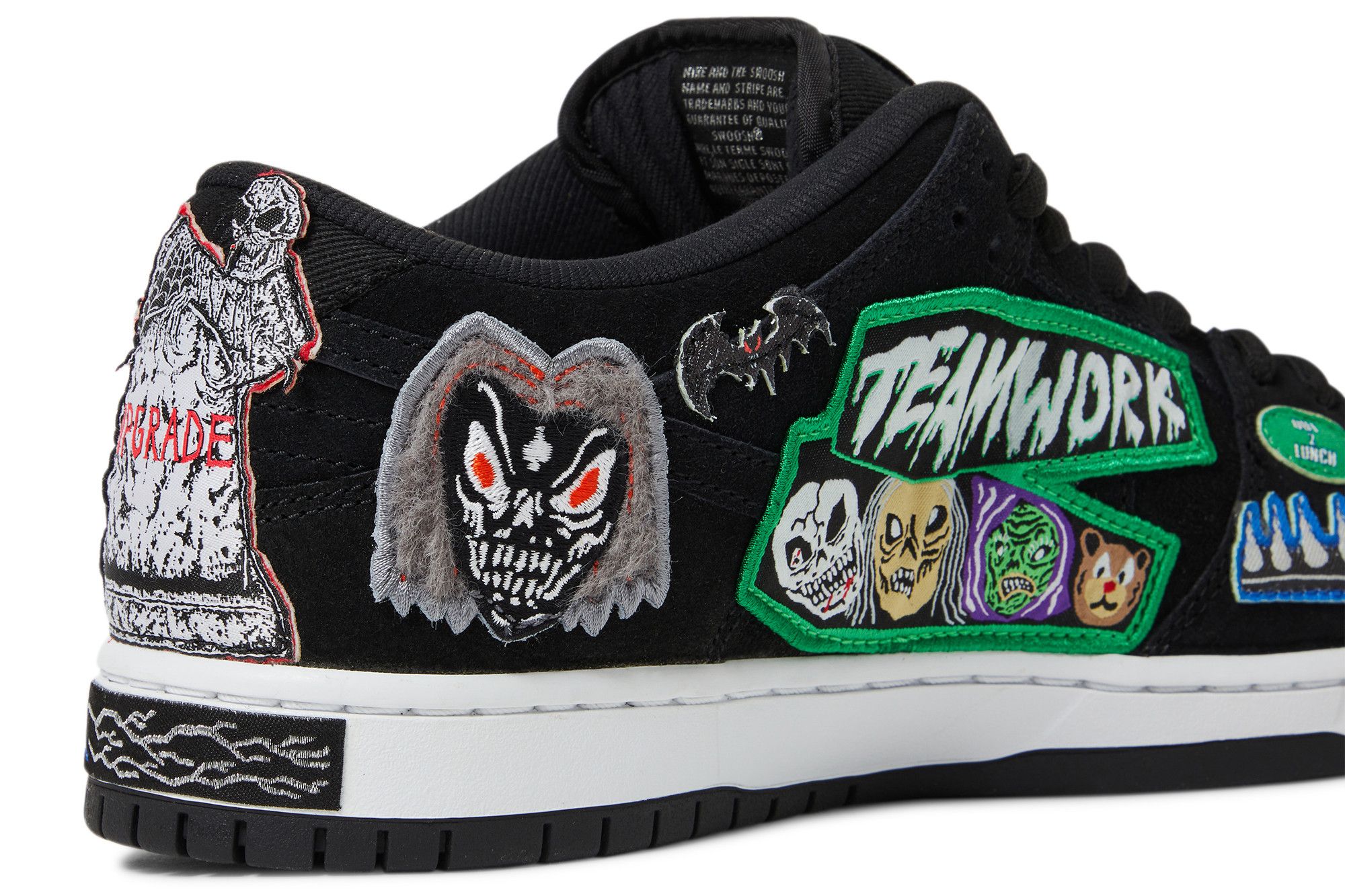La SB Dunk Low Neckface s'inspire du monde du heavy metal. On retrouve ensuite une tige en daim noir sur laquelle se trouvent de multiples patchs laissant apparaître des crânes ou encore des démons. Le tag sur la languette a été revisité pour mettre en avant la collaboration avec le graffeur californien. Voir toutes les spécifications sur Nike .