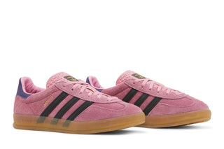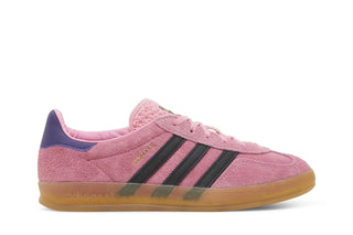 Le Adidas Gazelle Indoor Aluminum Core Black presentano una tomaia in rete color grigio alluminio che viene spezzata dalla punta scamosciata del medesimo colore. Le classiche strisce laterali Adidas color nero conquistano i pannelli laterali della sneaker. Alla base della sneaker c'è una suola in gomma semitrasparente.