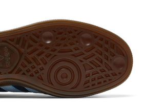 Questa Adidas Handball Spezial Navy Gum presenta una base in nabuk blu navy, accompagnata dalle tre strisce in pelle azzurra abbinate alla linguetta del tallone. I dettagli dorati sul pannello laterale e sulla linguetta aggiungono un tocco di classe mentre una suola in gomma completa il design. Controlla le specifiche del prodotto su Adidas