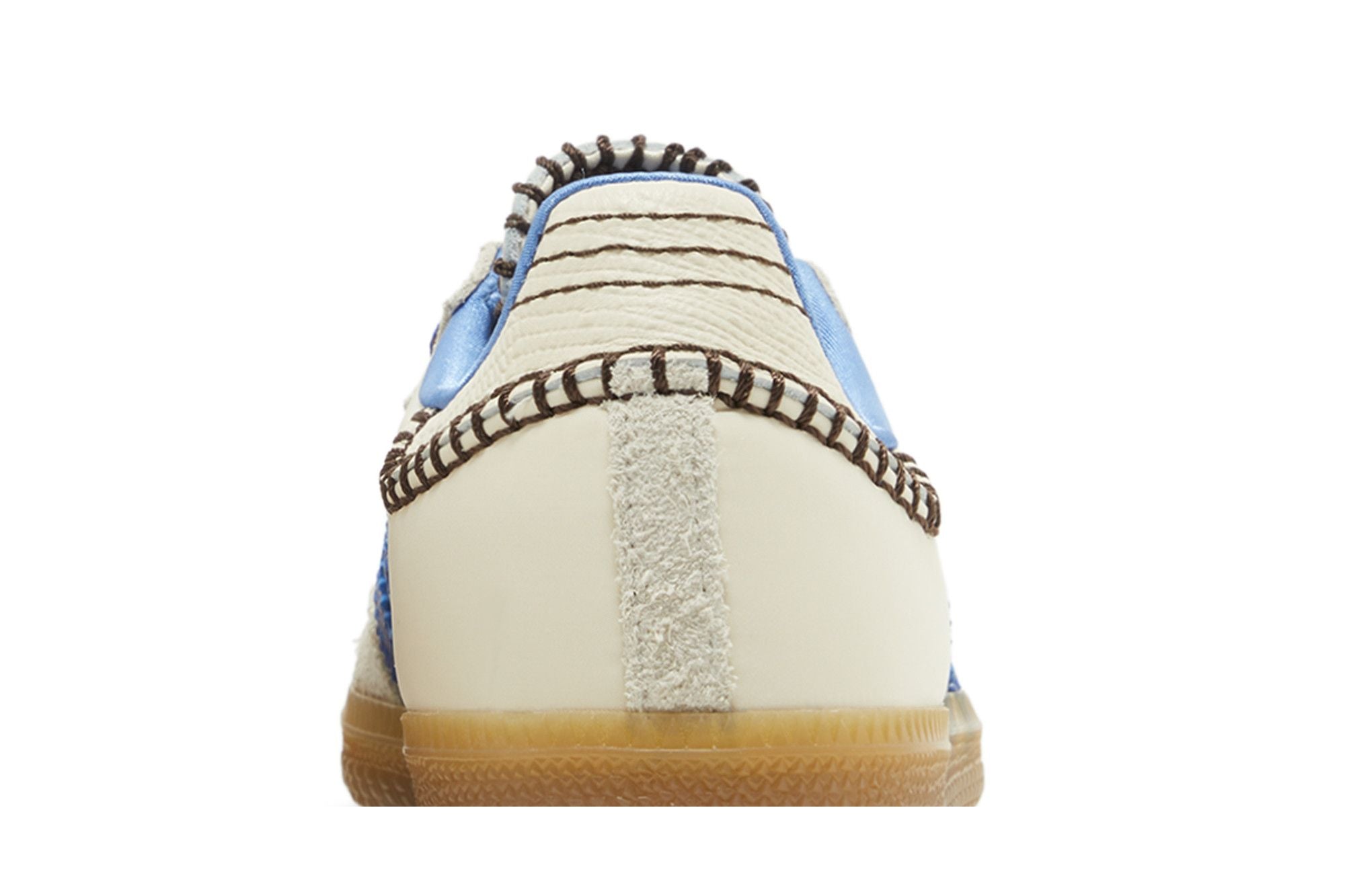 Questa Adidas Samba Nylon Wales Bonner Wonder Clay Royal presenta una base in pelle panna accompagnata da cuciture nere e bianche. Le tre strisce adidas danno contrasto alla silhouette con il loro design in pelle blu.