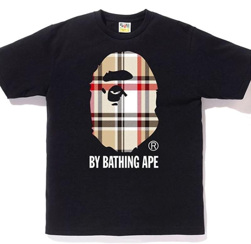 La BAPE A Bathing Ape Check by Bathing Tee Black Beige è una maglietta nera realizzata principalmente in cotone, caratterizzata dal motivo del volto dell'ape in beige sulla parte anteriore. Presenta cuciture rifinite e un colletto ben lavorato.