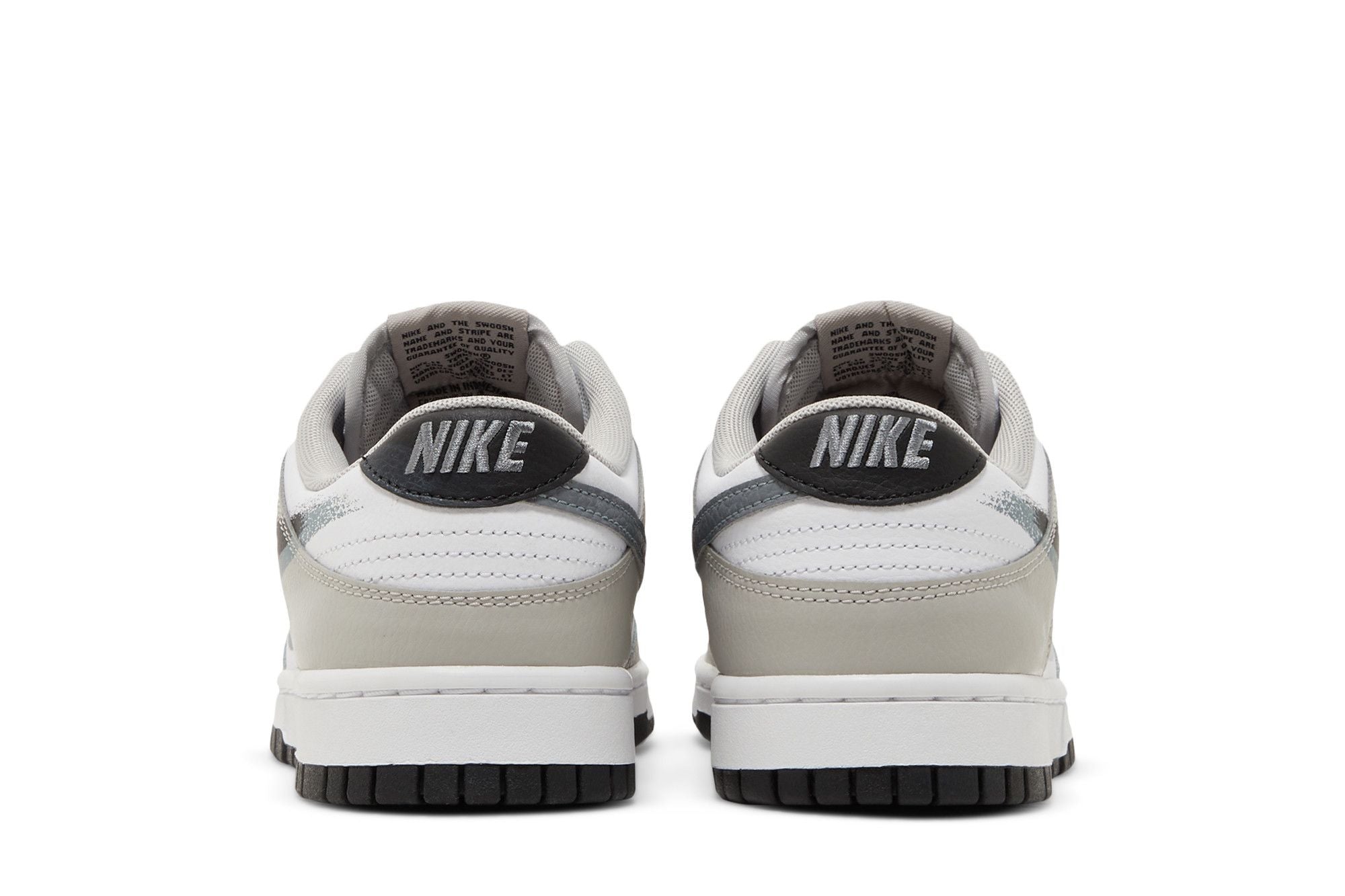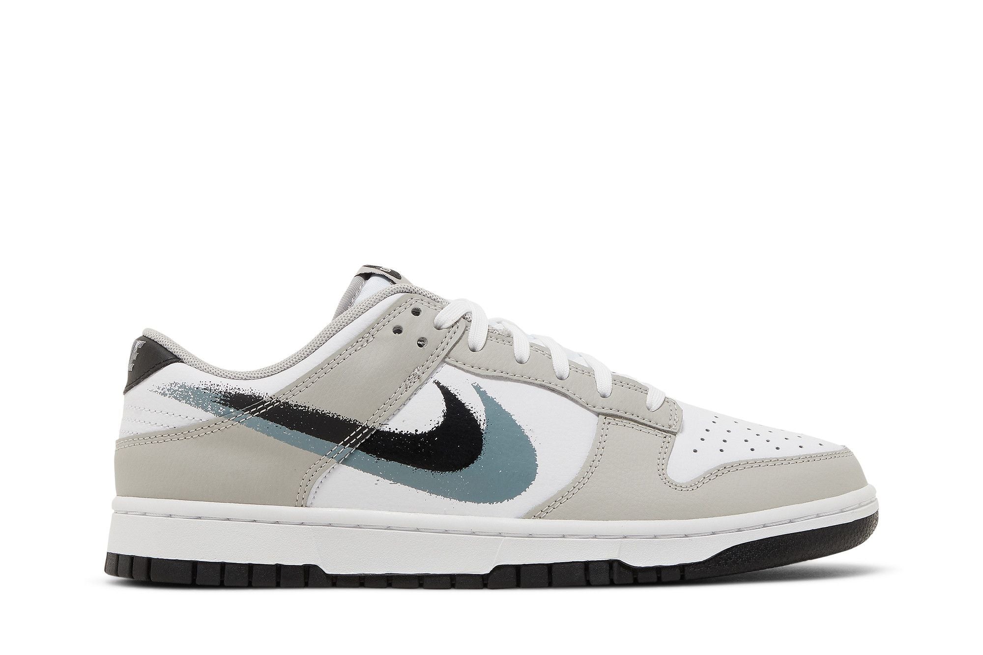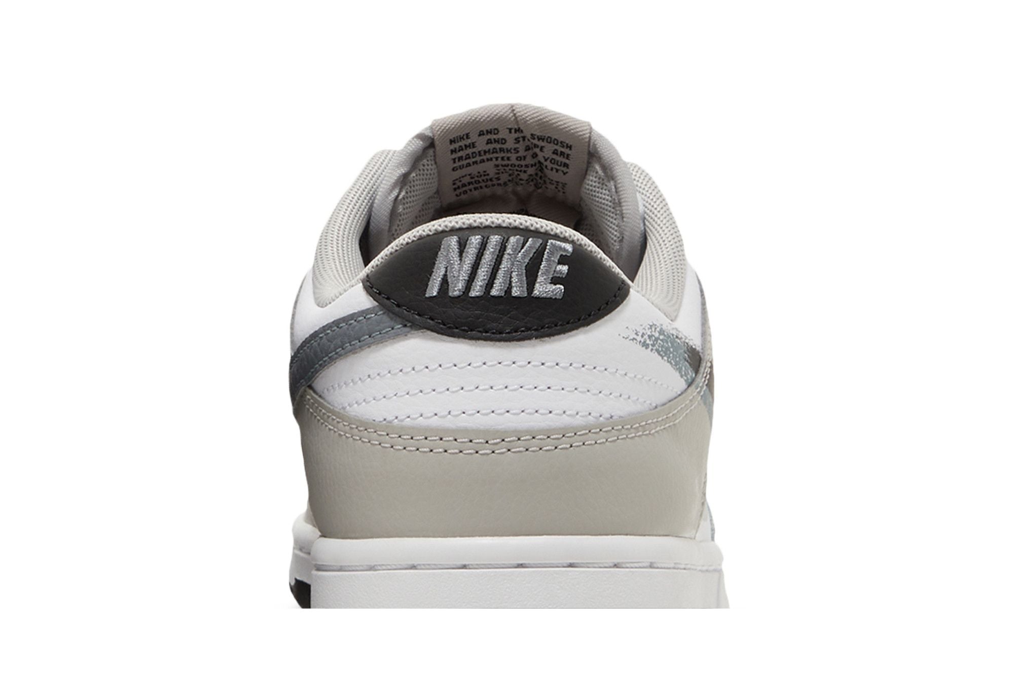 La Nike Dunk Low Stencil Swoosh presenta una base in pelle bianca con sovrapposizioni in pelle grigia. Questo modello trae la sua originalità da due Swoosh grigi e neri sovrapposti sul pannello laterale in una stampa simile a un graffito all'esterno, mentre si presenta in un design classico all'interno con pelle grigio scuro. Guarda tutte le specifiche su Nike.