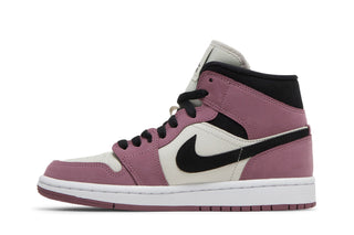 La Jordan 1 Mid Light Mulberry presenta una base in pelle bianca con un look granuloso. Inserti in nabuk rosa fucsia coprono l'intera tomaia. I marchi di firma come lo swoosh e il logo Wings sono in nero e si abbinano perfettamente al colletto e ai lacci. Un'intersuola bianca con una suola mauve completa il design. Guarda tutte le specifiche su Nike.