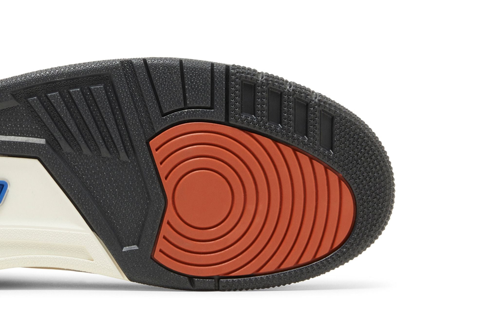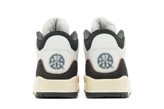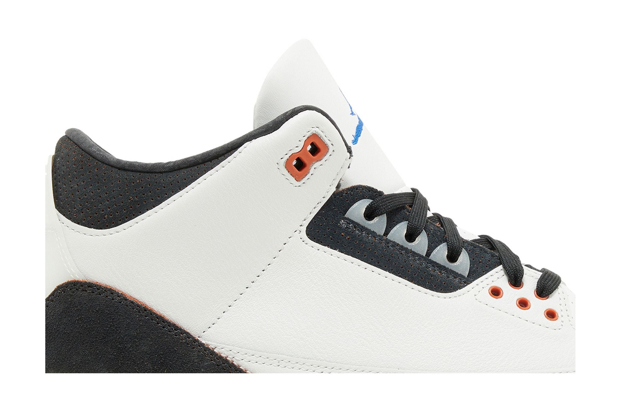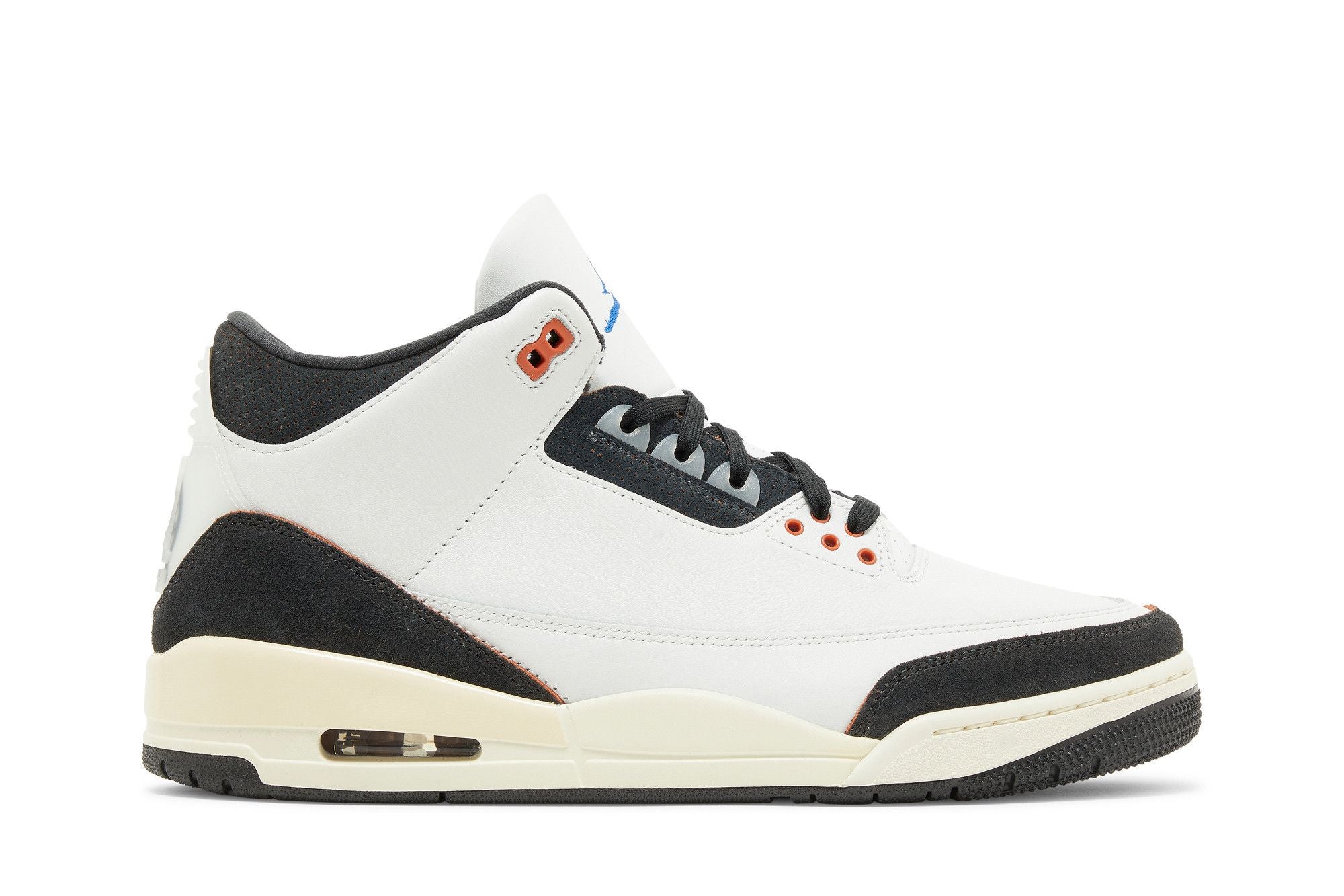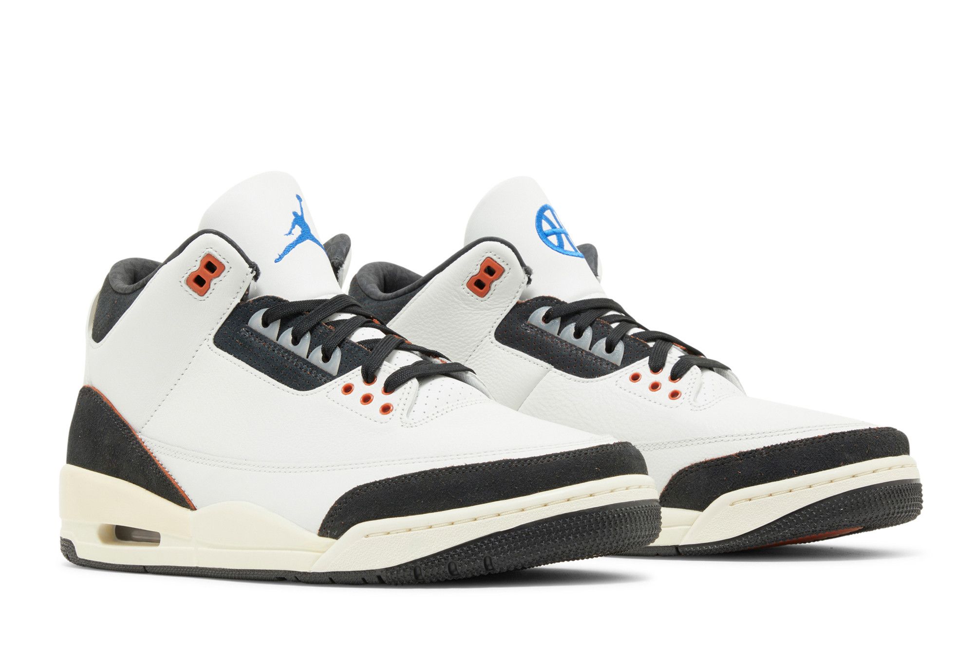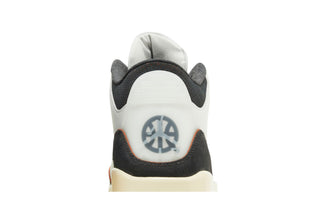 L'Air Jordan 3 Retro Quai 54 (2024) presenta una tomaia in pelle bianca di alta qualità completata da accenti in pelle scamosciata nera e tocchi di blu e arancione sugli occhielli e sulla linguetta. Il logo Quai 54 è esposto con orgoglio sulla linguetta, in omaggio al torneo. L'intersuola color crema e la suola nera offrono comfort e durata.