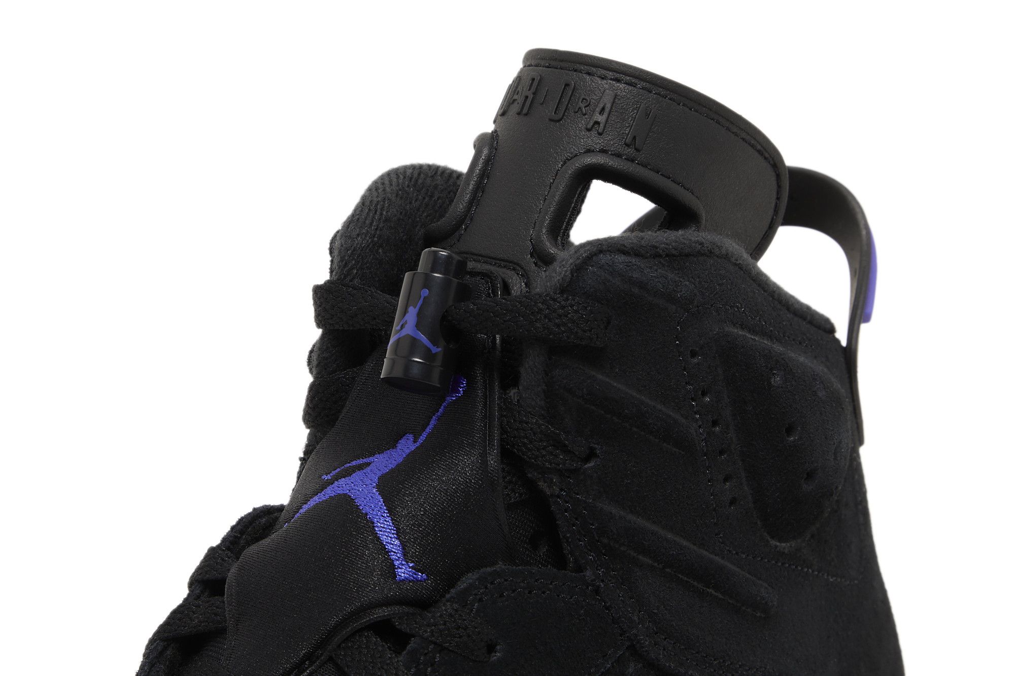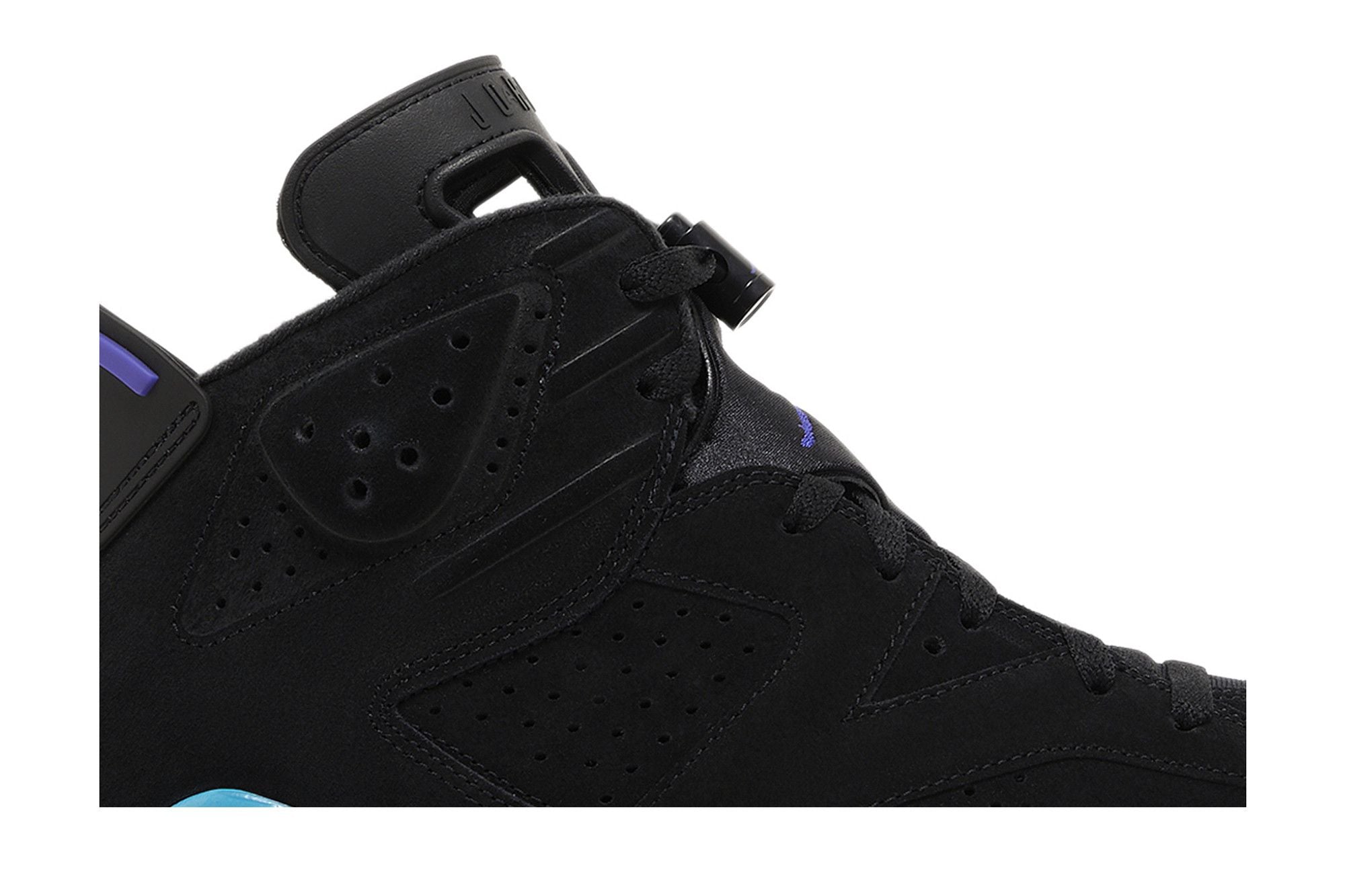 La Jordan 6 Retro Aqua propone un design lavorato su base scamosciata nera, accompagnato da dettagli viola e celesti. I marchi Jumpman sulla suola e sui lacci accompagnano la silhouette. Guarda tutte le specifiche su Nike.