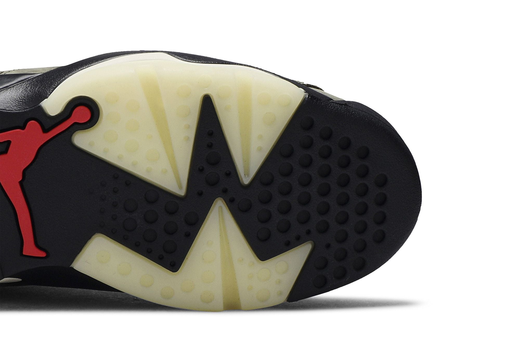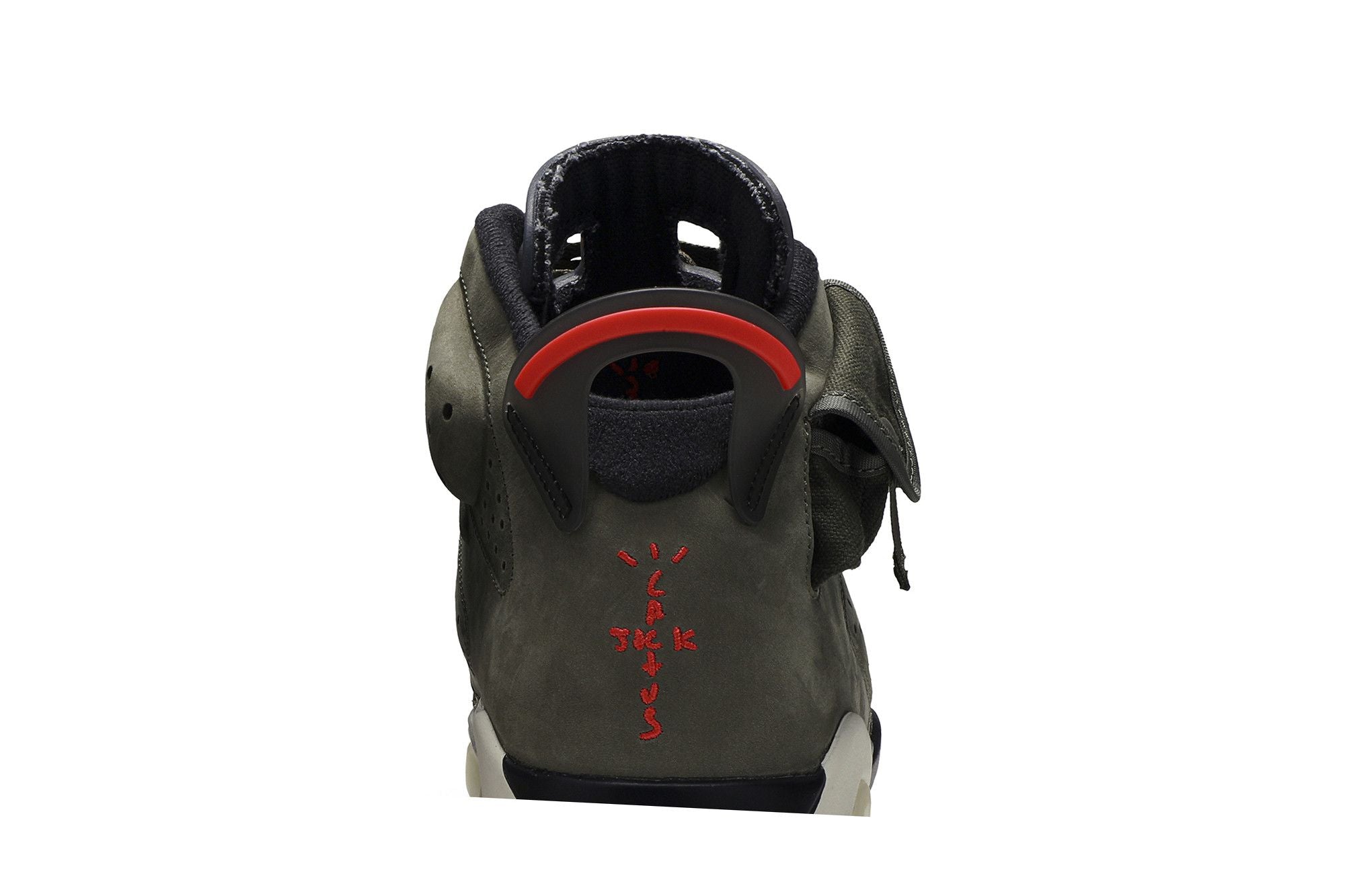 La Jordan 6 Retro Travis Scott è il risultato della collaborazione tra Travis Scott e Jordan Brand, che si caratterizza per la sua olive upper con dettagli neri e accenti rossi contrastanti sulla lingua e sui fermagli delle lacciuette. Un pocket laterale sulla collaretta aggiunge un tocco unico a questo modello, che vanta anche una suola traslucida fluorescente, dettagli in 3M e il branding sia Nike Air che Cactus Jack sul tallone. La Jordan 6 Retro Travis Scott è una creazione innovativa che combina stile e funzionalità.