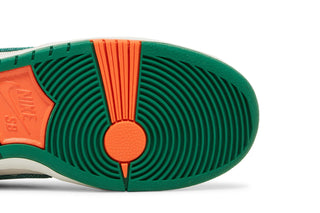 Nike Dunk Low SB Jarritos sfoggia un design ispirato al famoso marchio messicano di bibite gassate. La tomaia combina una base in pelle bianca Phantom con sovrapposizioni in tela di canapa e uno Swoosh in tessuto verde malachite. Il logo Jarritos è ricamato in verde e arancione sul tallone laterale, mentre il doppio marchio impreziosisce l'etichetta intrecciata sulla linguetta. Le linguette del tallone non corrispondenti sono decorate con "Nike" e "Jarritos" sulla scarpa sinistra e destra. Una suola bicolore verde e arancione completa il look. Guarda tutte le specifiche su Nike.